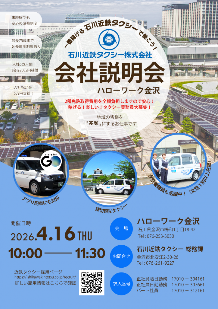 安心と信頼の石川近鉄タクシー!